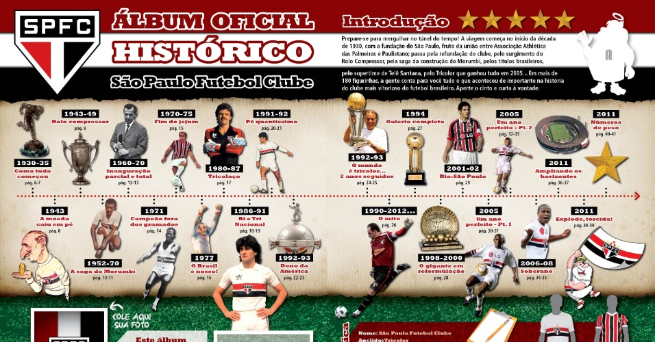 “Esse álbum já vinha sendo discutido com o São Paulo. O interesse aumentou depois do álbum do Brasileirão [lançado no segundo semestre de 2011]. A coleção tem 186 cromos, sendo 154 figurinhas normais e 32 especiais, sendo 16 metalizadas e 16 em PVC com meio corte”, disse Vilson Manfrinati, diretor da divisão de futebol da Panini no país.